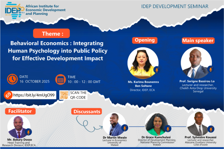 The African Institute for Economic Development and Planning (IDEP/ECA) invites you to a seminar on the theme:🎯 “Behavioral Economics: Integrating