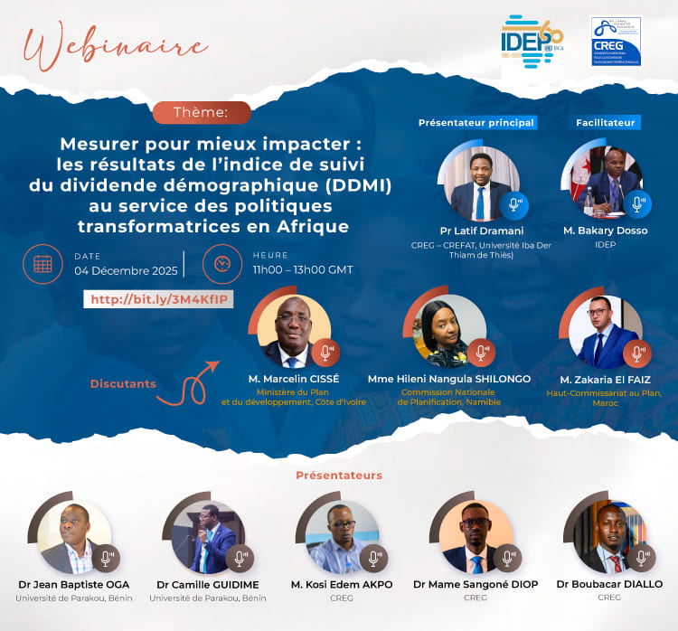 Le Consortium Régional pour la Recherche en Économie Générationnelle (CREG), en partenariat avec la Direction Générale de l’Économie et de la Planification