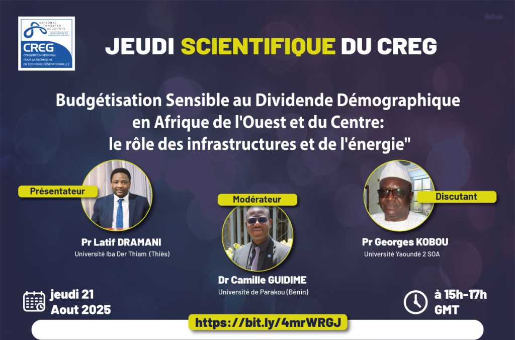 Date : Jeudi 21 août 2025 🕒 Heure : de 15h à 17h GMT 💻 Format: Session virtuelle 🎓 Thème : Budgétisation sensible au dividende démographique en Afrique de l’Ouest et du Centre : le rôle des infrastructures et de l’énergie Vous êtes chercheur, décideur public, partenaire technique ou simplement passionné par les politiques publiques inclusives et fondées sur des données probantes ? […]