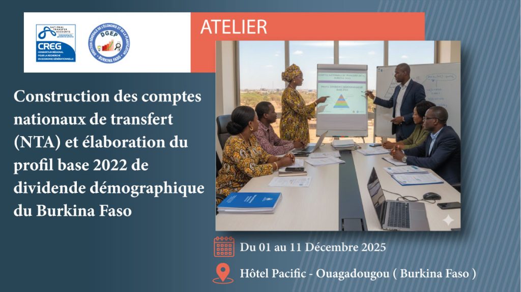 Le Consortium Régional pour la Recherche en Économie Générationnelle (CREG), en partenariat avec la Direction Générale de l’Économie et de la Planification (DGEP) du Burkina Faso, avec l’appui du Programme SWEDD+ et de l’UNFPA, annonce la tenue d’un atelier de renforcement de capacités consacré à l’élaboration du profil NTA sur le dividende démographique. La dite session se déroulera du 1er au 11 décembre 2025 à […]