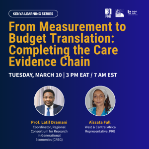 Organisé par le Consortium Régional pour la Recherche en Économie Générationnelle (CREG), en partenariat avec le Population Reference Bureau (PRB), cette série de six webinaires est consacrée à : « SOINS et Budgétisation Sensible au Dividende Démographique (BSDD) »